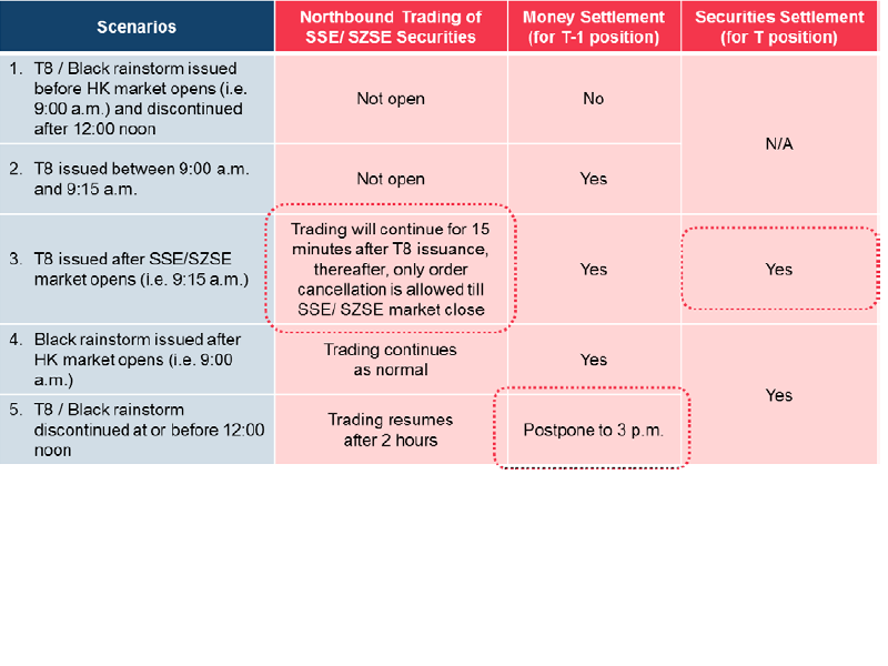 The following table illustrates the holiday arrangement of Northbound trading of SSE/SZSE Securities:
