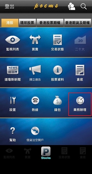 2. POEMS手机应用程式提交转入股票指示(请更新App版本)