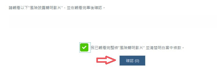 13.最後,請觀看風險披露聲明影片,觀看後按方格確認清楚明白當中條款。