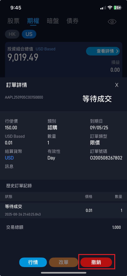 11. 撤單:點擊該筆訂單 → 右下角 撤銷 → 再次點擊 撤銷 確認。